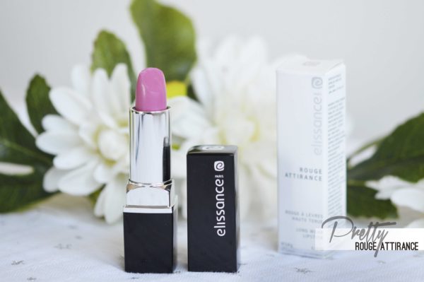 Et voilà le second produit dédié aux lèvres dans ce set : le Rouge Attirance en teinte Pretty (n°23). Un rose Barbie aux sous tons froids, qui je dois te l’avouer me faisait un peu peur comme ça dans son tube ! Il possède de minuscules paillettes qui lui donne un vrai coté lumineux. Il se présente dans un tube noir, et le numéro de sa référence est noté en dessous de son tube, ainsi que sur le coté de l’étui cartonné qui l’accompagne.