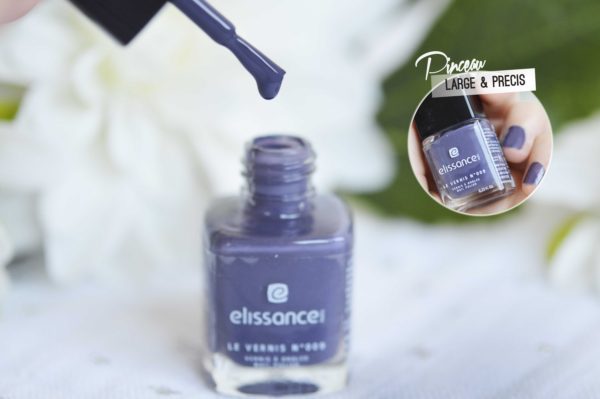 J’aime tout particulièrement son petit pinceau épais, et souple juste ce qu’il faut. Qui permet une application rapide et précise. Coté séchage, il suffit effectivement de quelques minutes pour que le vernis ne bouge plus. Il te faudra 2 couches minimum pour obtenir une belle opacité. Sans top coat, le fini est déjà bien brillant mais pour faire perdurer ton vernis, mieux vaut en appliquer un par dessus !
