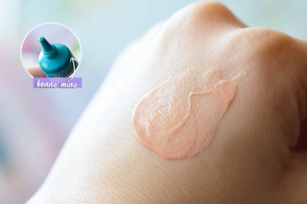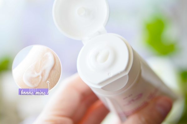 Elle se présente dans un petit flacon en plastique de 30ml, à l’embout doseur ultra précis. Et surprise ! A la sortie du tube, il s’agit d’une crème légèrement teintée ! Effet bonne mine, nous voilà puisqu’en plus de ça elle contient des micro-nacres dorées qui apportent un glow discret au teint. A l’intérieur, on retrouve l’eau pure de Provence de la montagne Sainte Victoire, de l’huile d’olive (emolliente, assouplissante et hydratante), et du beurre de karité (adoucissant, nourrissant et protecteur). Et effectivement coté parfum c’est plutôt agréable : je trouve un petit coté abricoté absolument délicieux…J’avais franchement un peu d’appréhension à utiliser ce produit. Mais finalement : c’est très naturel, tout en délicatesse et ça donne un teint ultra frais même les jours où j’ai passé une nuit terrible !