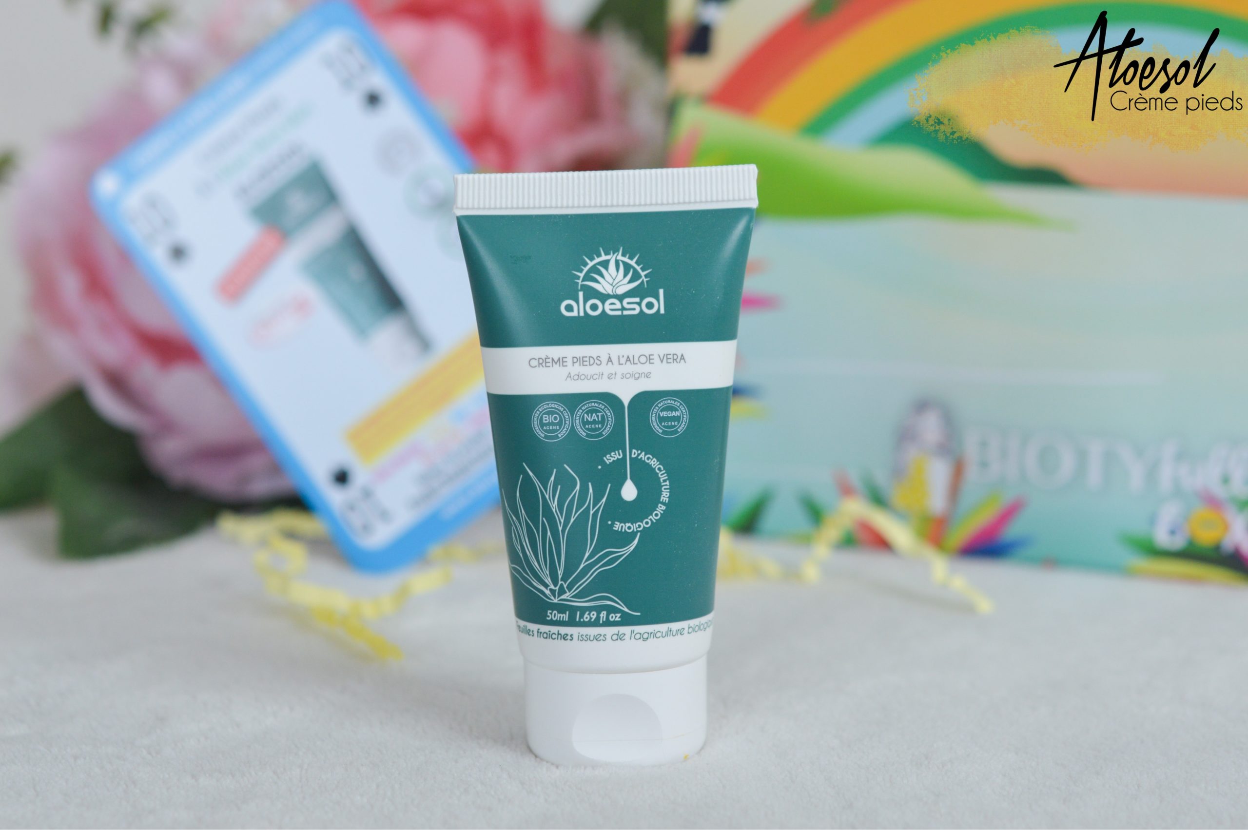 Crème pieds à l’aloe vera vert – Aloesol – 50ml pour 12,90€) ( -20% de remise sur l’eshop de la marque avec le code BIOTYFULL20 jusqu’au 31/08/23)