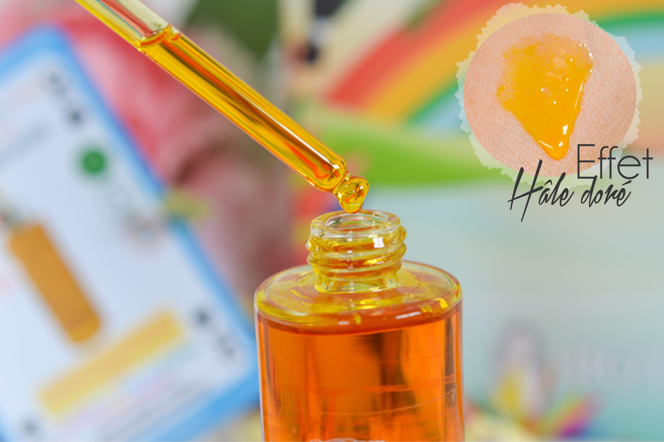 Ce soin se présente dans un joli flacon en verre avec un embout pipette pour un dosage facile. Pour la composition, on trouve à l’intérieur : de l’huile de karanja (répare et hydrate), de l’huile de buriti (émolliente , effet bonne mine) et un extrait de carotte (favorise et prolonge le bronzage). A ma grande surprise : pas d’effet gras sur la peau, le produit pénètre en quelques secondes et sa fait vite oublier !