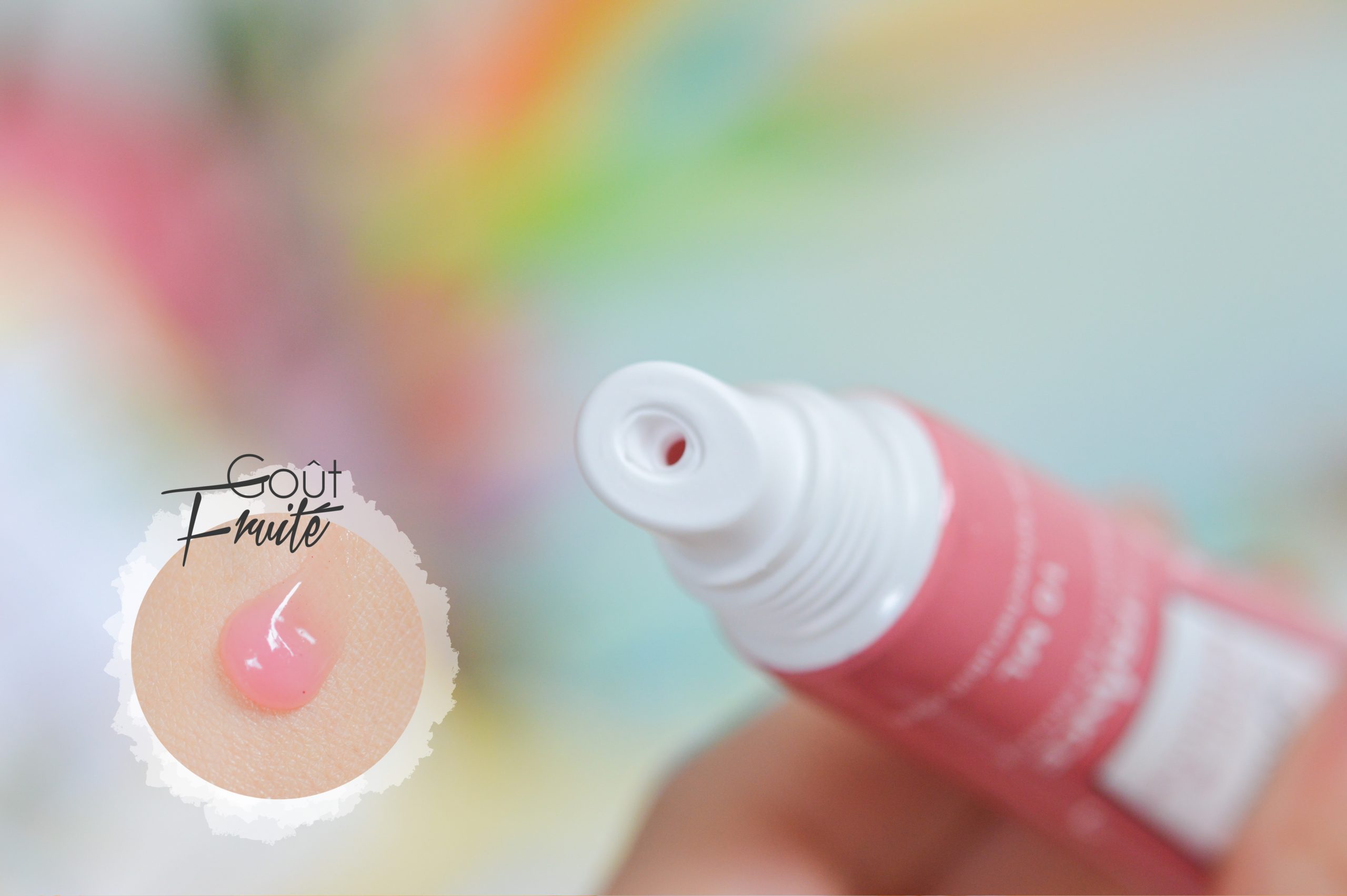 Le produit se présente dans un tube souple de 10ml. Avec un embout biseauté pour une application rapide et facile. A l’intérieur on retrouve de l’huile de ricin (répare et nourrit) et de l’huile de coco (évite la déshydratation , booste la souplesse des lèvres). La texture légèrement gélifiée donne un bel effet repulpant aux lèvres, attention quand même à l’application ça reste bien liquide. Et surtout elle ne rend pas les lèvres collantes. Elle a un léger goût sucré vraiment très agréable.