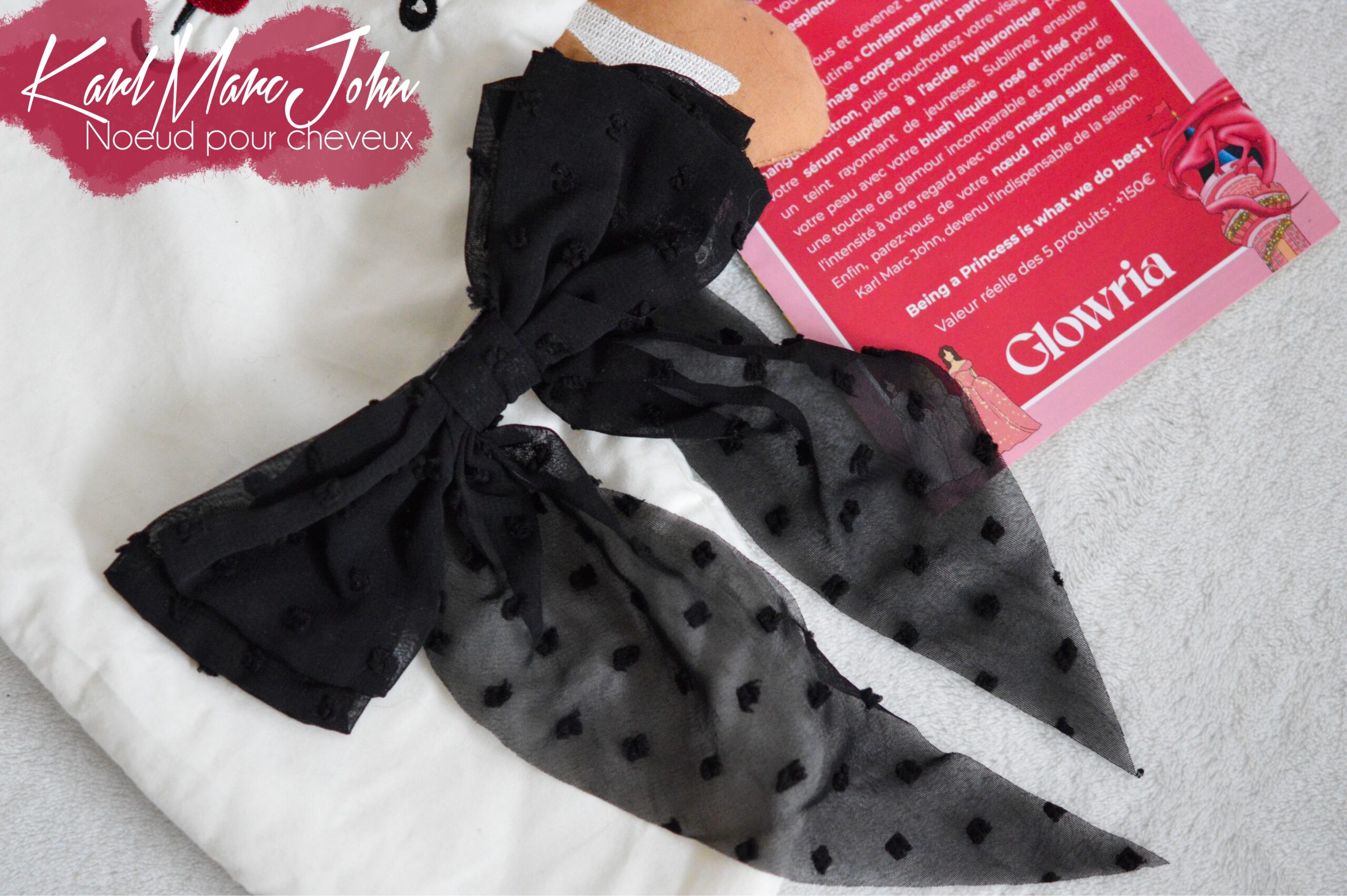 On clôture cette édition avec le dernier produit de cette box, qui m’a clairement conquise dès le premier regard. Il nous vient de la marque Karl Marc John et il s’agit d’un noeud pour les cheveux noir nommé Aurore. Cette jolie marque de vêtements et accessoires pour femmes est imaginée à Paris et propose des looks modernes et colorés de qualité, avec de belles matières à l’honneur.