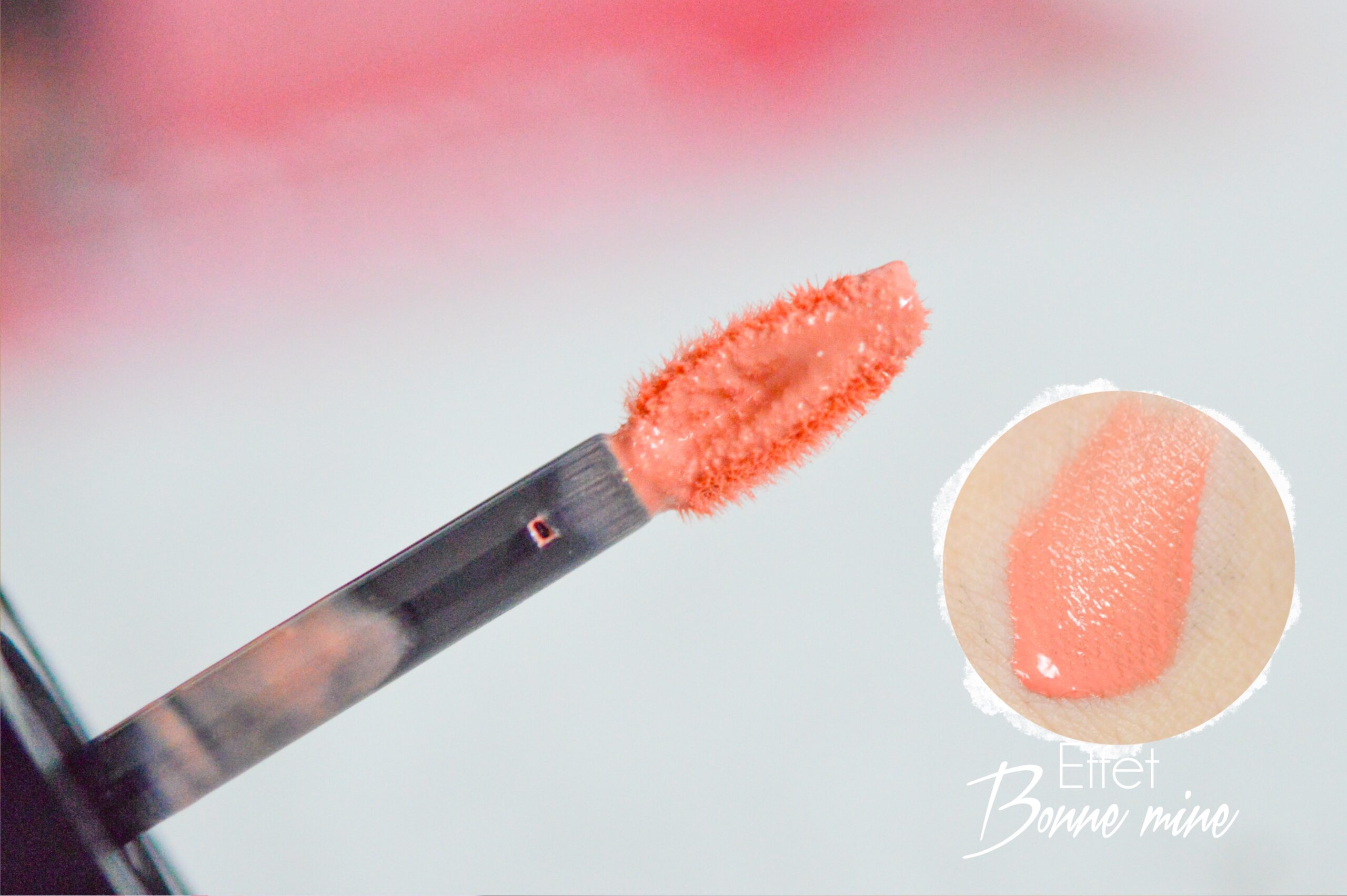 Il se présente dans un joli étui semblable à un rouge à lèvres de 6g, et comporte d’ailleurs un embout applicateur façon gloss. Celui-ci permet une application facile et rapide. J’aime énormément la teinte Céline, de couleur pêche clair qui donne un effet bonne mine instantané ! La tenue est très bonne et l’intensité modulable. A l’intérieur on y trouve de l’argousier et du beurre de karité ainsi que des paillettes irisées pour donner une petite touche glowy.