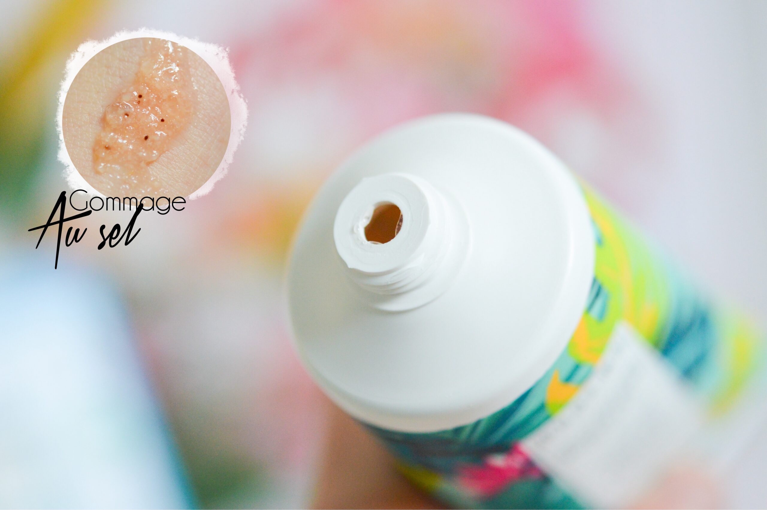 Cette fois, j’ai reçu le gommage dans sa version tube souple de 70ml. À prendre en main. À l’intérieur on retrouve du sel de mer (désincruste les pores), ainsi que de la poudre de coque de noix de karité (élimine les peaux mortes), ainsi qu’un mélange d’huiles précieuses adoucissantes. On retrouve bien entendu le parfum Fleur de tiaré absolument inimitable. Il suffit d’en appliquer une noisette sur la peau humide et de masser délicatement avant de rincer à l’eau claire.