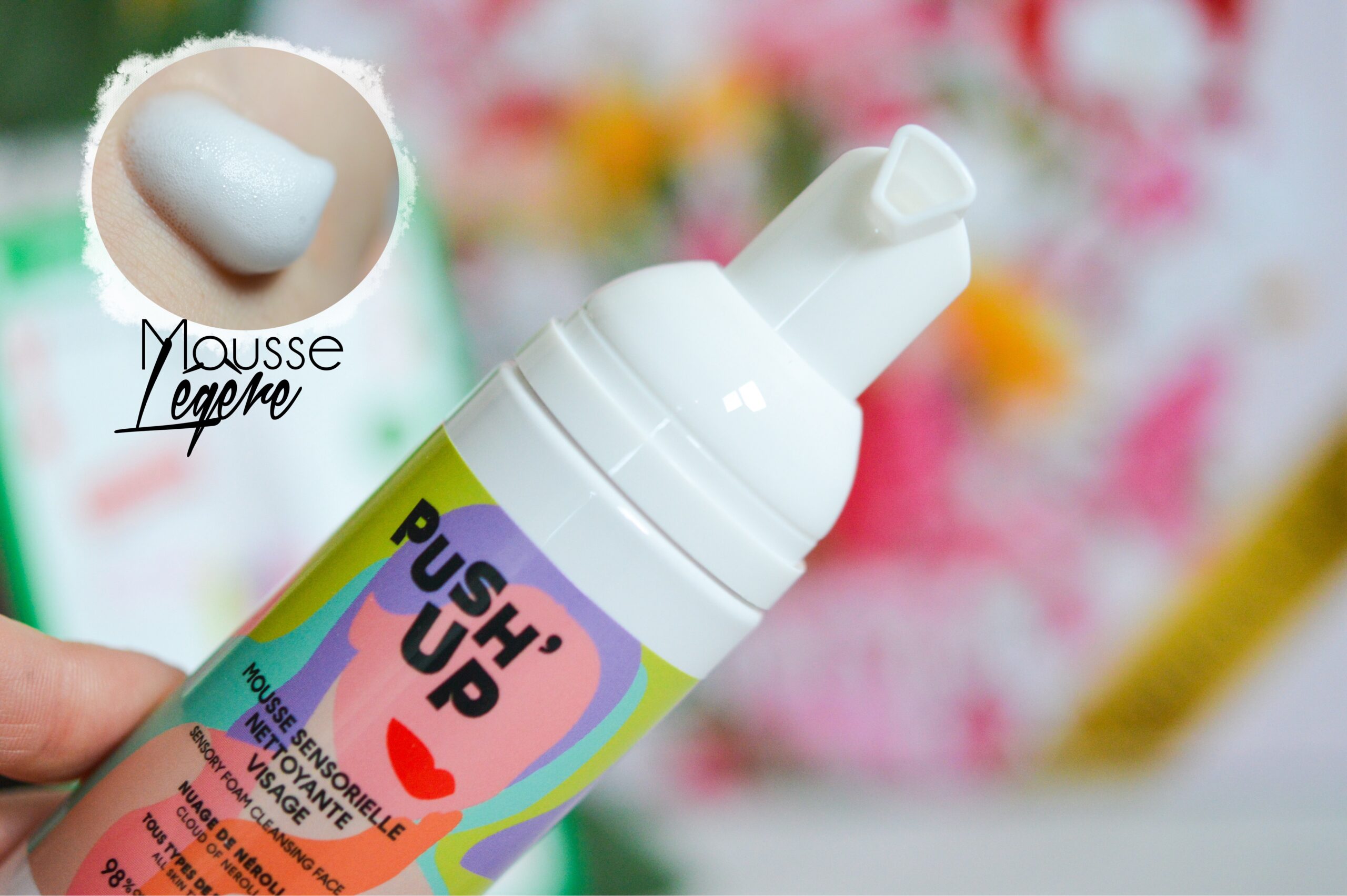 Il est temps de passer à notre troisième pioche, et de découvrir la marque Push’up, qui nous propose de faire connaissance avec sa Mousse sensorielle nettoyante. Un produit que j’ai toujours dans ma salle de bain ! Pour celles et ceux qui, comme moi ne connaîtraient pas encore Push’up : la marque propose des soins haut de gamme conçus en France, et formulés à base d’ingrédients naturels.