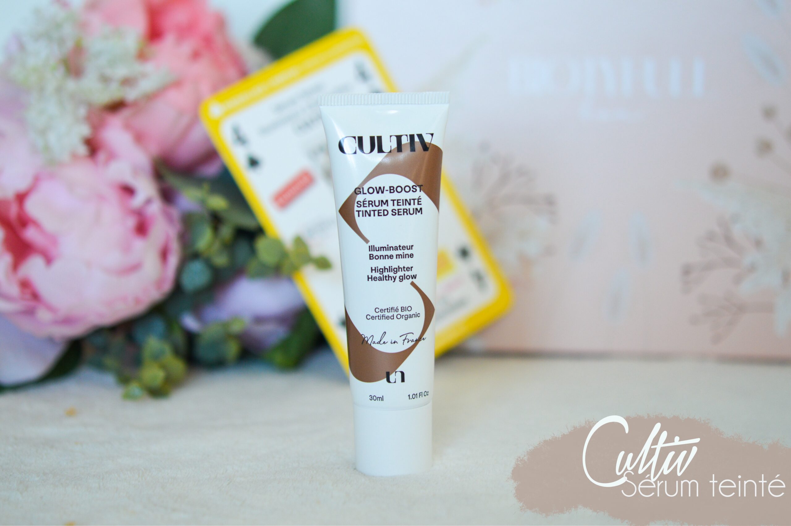 On termine avec un produit à mi chemin entre soin et maquillage qui nous vient de la marque Cultivâtes, qu’on a déjà pu croiser dans nos boxs ! Il s’agit d’un sérum teinté pour le visage effet bonne mine & illuminateur. Chez Cultivâtes, on propose des formules alliant haute performance et haute tolérance, via des ingrédients ordinaires aux propriétés extraordinaires .