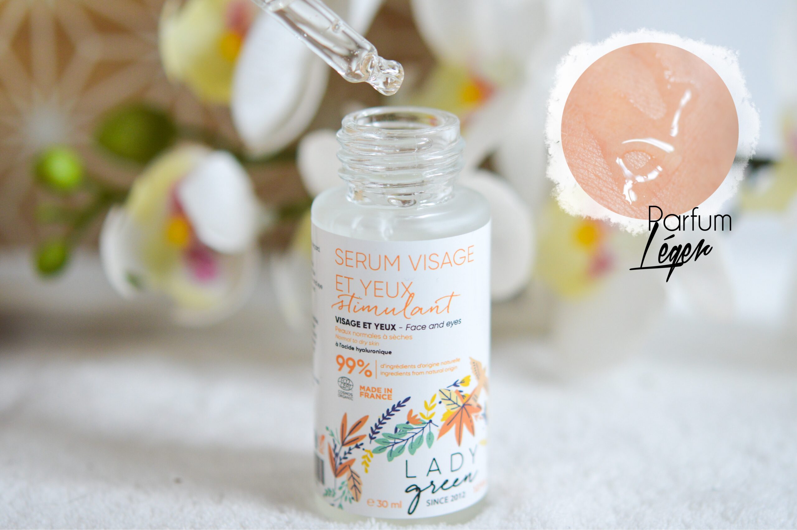 Ce sérum se présente dans un élégant flacon en verre de 30ml, et possède un embout pipette pour un dosage précis. Sa texture est à mi-chemin entre fluide et gelée, et pénètre rapidement dans la peau, sans laisser d’effet gras. Coté composition on y trouve de l’acide hyaluronique (repulpe, améliore l’élasticité de la peau, lisse les ridules), parfait pour apporter fraicheur et confort à la peau. Le parfum est léger et très doux, et se fait rapidement oublier.