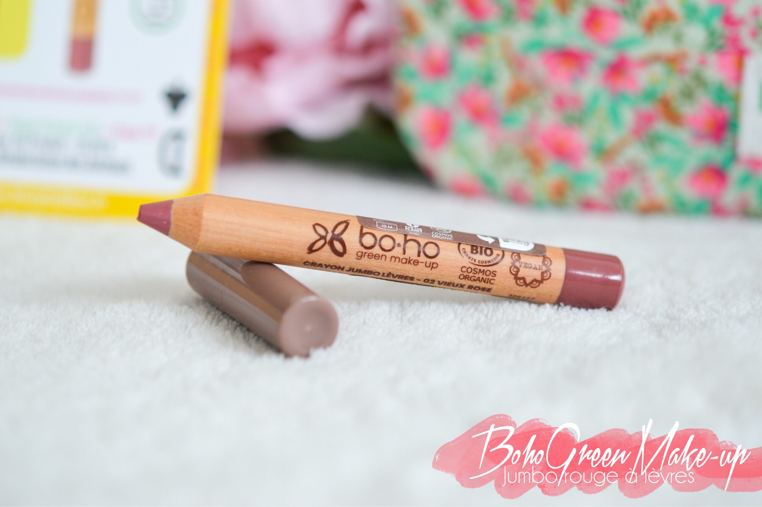 Sous forme de crayon jumbo ( de 2,1g), facile à appliquer, le rouge à lèvres que nous avons reçu se décline dans la teinte 02-Vieux Rose . Et comme son nom le laisse à penser, il s’agit ‘un joli rose légèrement désaturé, avec quelques reflets froids. Coté composition on trouve de l’huile de coco (nourrit en profondeur, prévient de la déshydratation), ainsi que du mica (pour un rendu lumineux et uniforme). Comme d’habitude avec Boho Green la pigmentation est top, et la tenue excellente.