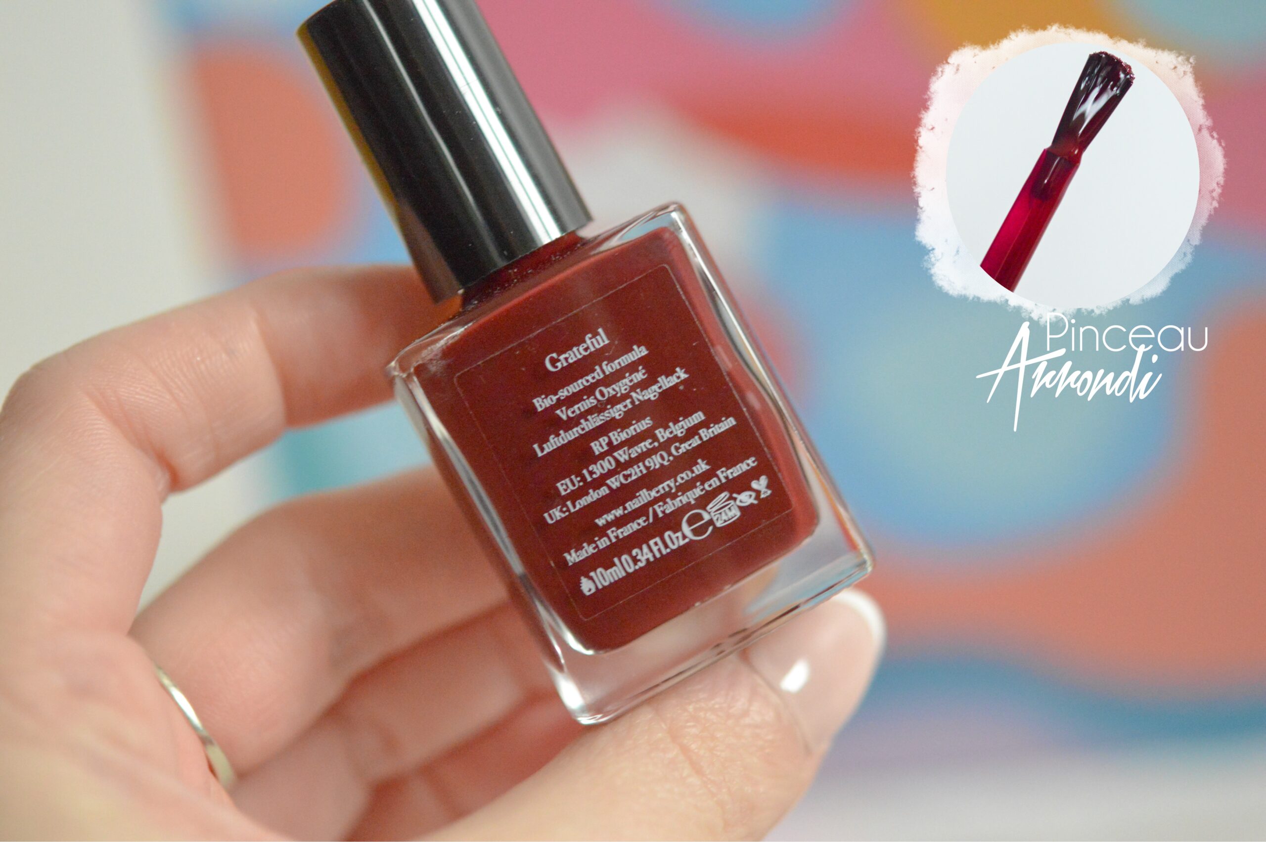 On clôture cette routine avec un petit produit maquillage comme on les aime : il nous vient de chez Nailberry, cette jolie marque de vernis que l’on croise régulièrement dans nos boxs. Il s’agit pour cette fois d’un vernis bordeaux nommé Grateful. Totalement de saison c’est une couleur que j’adore porter en automne/hiver.